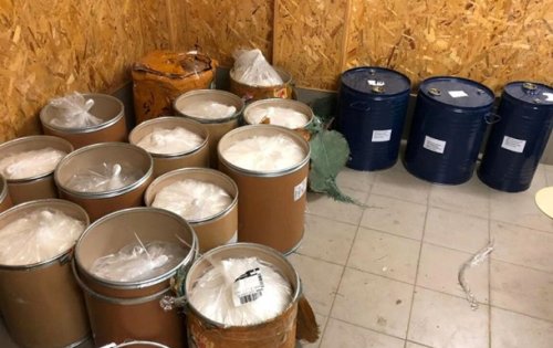 Всего в ходе проведения обысков в нарколаборатории и складских помещениях полицейские обнаружили 630 килограммов прекурсоров, которых достаточно для изготовления более 200 килограммов "метадона".