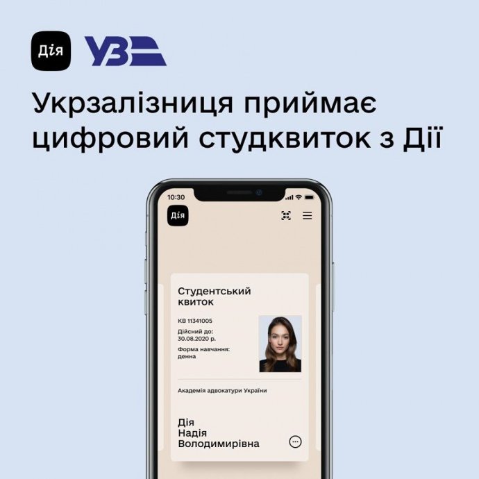 "Студенты при посадке в поезд вместо пластикового оригинала могут предъявить цифровой документ с мобильного приложения "Дия". Цифровой студенческий билет также позволяет путешествовать поездом со скидкой 50%", - говорится в сообщении.