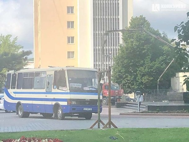 В центре Луцка на Театральной площади стоит автобус с заложниками. Об этом сообщает Перший.
