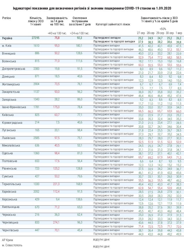 Кроме столицы не соответствуют критериям Минздрава следующие регионы: Винницкая, Волынская, Житомирская, Закарпатская, Ивано-Франковская, Киевская, Львовская, Николаевская, Одесская, Полтавская, Ровенская, Сумская, Тернопольская, Харьковская, Хмельницкая, Черновицкая и Черниговская области.