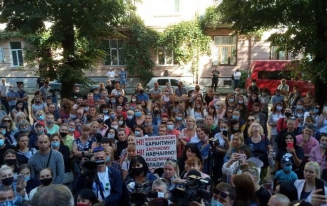 В Черновцах около 150 человек вышли на акцию протеста против дистанционного обучения под стены областной государственной администрации. Демонстранты требуют разрешить работу школ в городе. Об этом сообщает местное издание molbuk.ua.