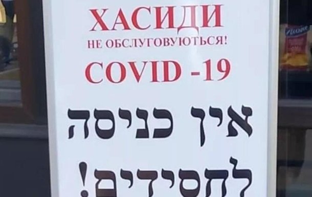 В магазине на улице Европейской в Умани вывесили табличку "Хасиды не обслуживаются! COVID-19". Фотографию таблички опубликовал в Facebook один из членов общины брацлавских хасидов в Умани Хаим Хазин в пятницу, 11 сентября.