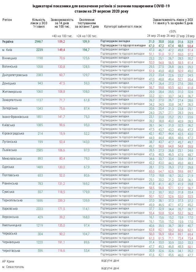 Почти во всех регионах Украины превышен показатель заболеваемости на 100 тысяч населения за последние 14 дней. В среднем в Украине этот показатель составляет 109,2 при норме в 40 случаев заболевания. В Киеве этот критерий составляет 149,4.