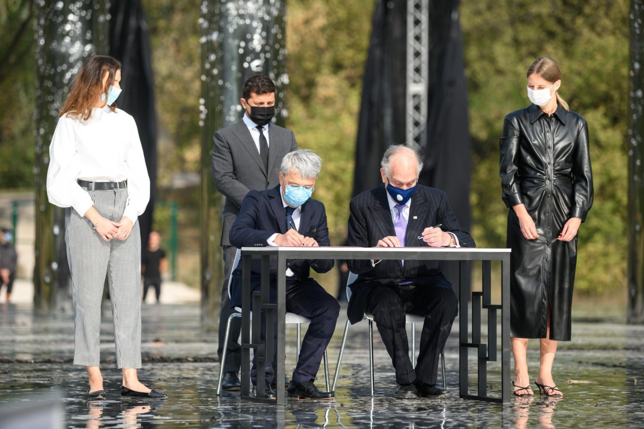 Подписание состоялось непосредственно на месте будущего мемориала сразу после церемонии почтения памяти жертв трагедии Бабьего Яра и открытия масштабной аудиовизуальной инсталляции, которую представил Мемориальный центр Холокоста "Бабий Яр".