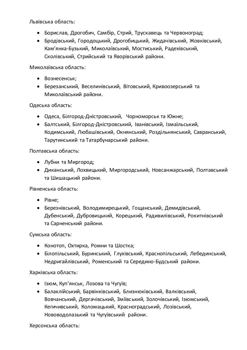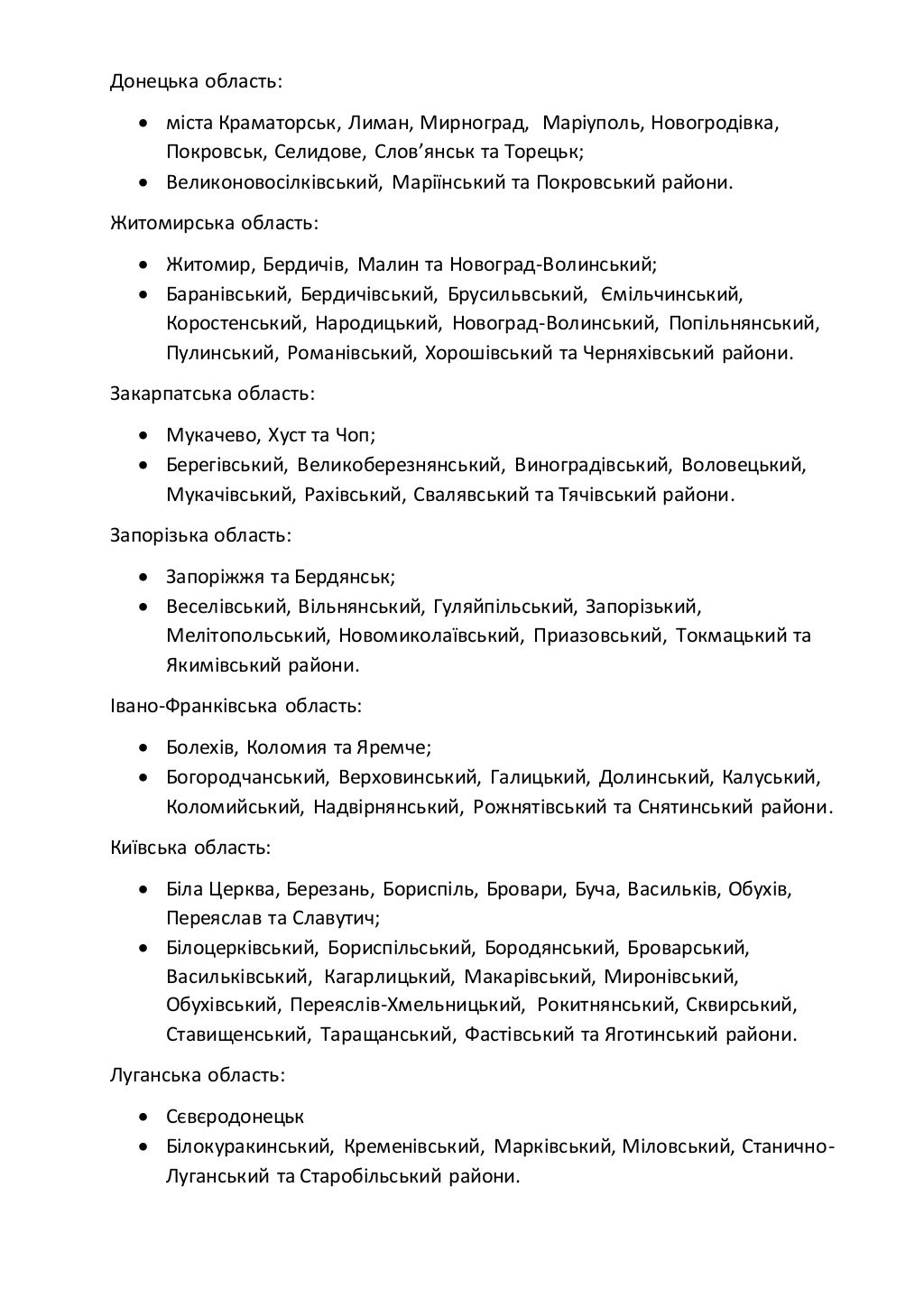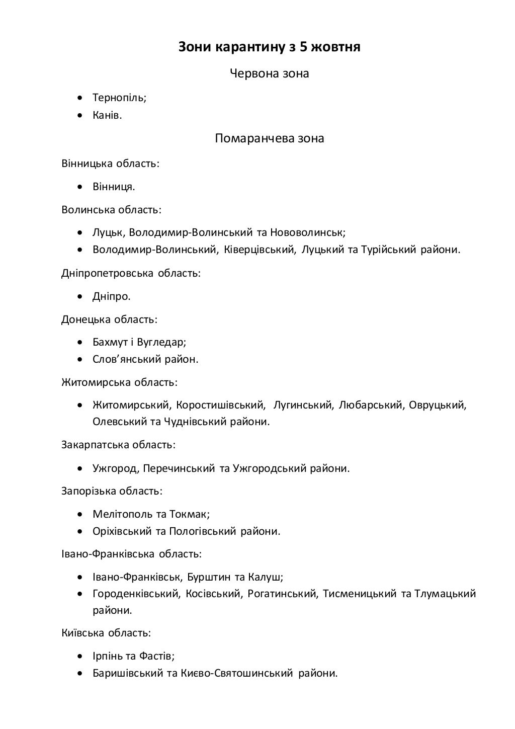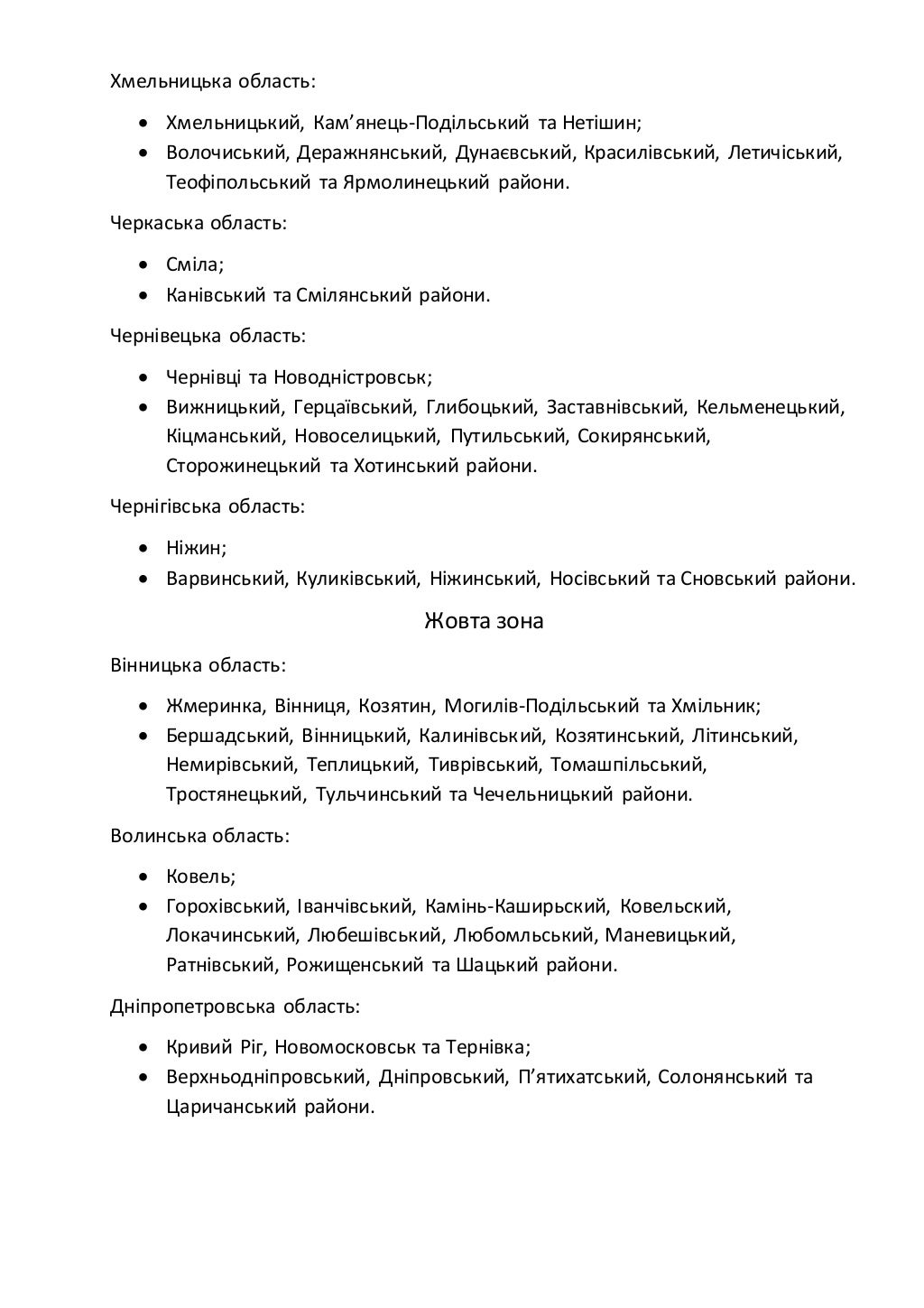 В "оранжевую зону" попали: Винница, Луцк, Днепр, Ужгород, Ивано-Франковск, Львов, Николаев, Полтава, Сумы, Харьков, Хмельницкий, Черновцы.