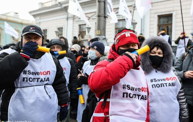 Акция протеста SaveФОП организована "Союзом защиты предпринимателей". Основные требования - принятие парламентом законопроектов об упрощенной системе налогообложения малого и среднего бизнеса, а также отмена введение фискальных кассовых аппаратов.
