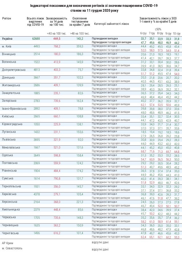 При этом в стране уменьшает показатель заболеваемости COVID-19. По состоянию на 11 декабря этот показатель 469,5 при норме 40, тогда как днем ранее он составлял 476,6. Самая плохая ситуация наблюдается в Сумской области - 790,8. В Киеве показатель составляет 768,2.
