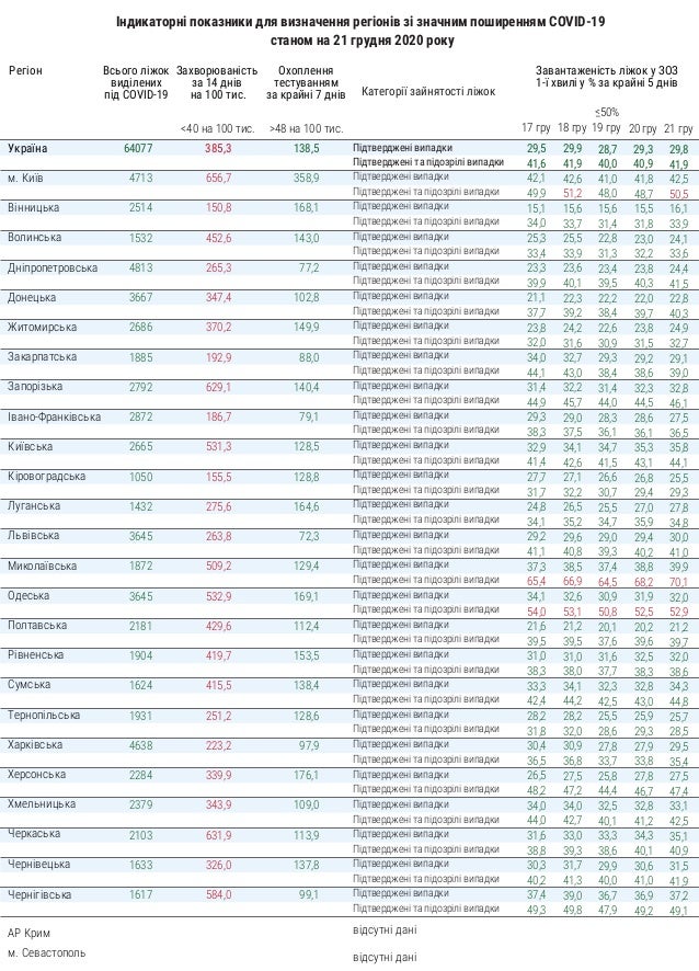 По состоянию на 22 декабря в Украине введено 64 077 кроватей для COVID-19.