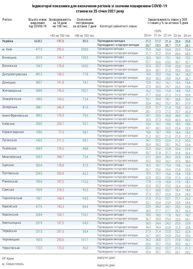 Больше всего койко-мест занято в Закарпатской (37,9%), Ивано-Франковской (42%) и Николаевской (38,5%) областях. В Киеве заполнены 28,5% больничных мест.