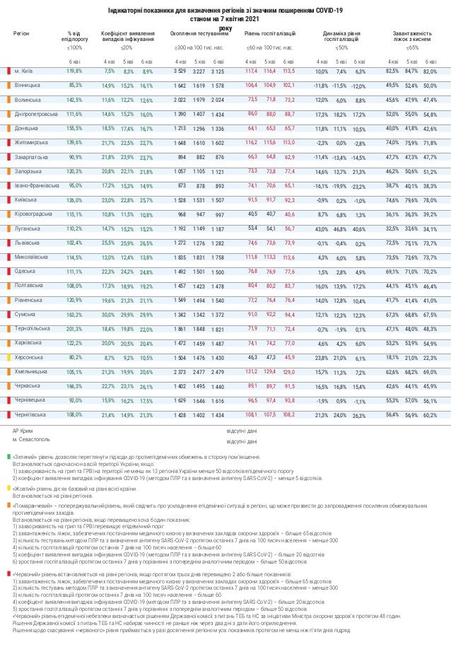 Согласно данным Совета национальной безопасности и обороны, в Украине по состоянию на 7 апреля заняты 62,3% (48 731) всех больничных коек для пациентов с COVID. Всего введено 78 166 таких коек.