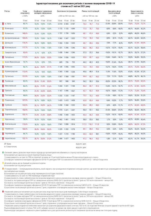 В "красной" зоне продолжают находиться больше половины всех регионов Украины: Киев, Житомирская, Запорожская, Киевская, Львовская, Николаевская, Одесская, Полтавская, Сумская, Харьковская, Хмельницкая, Черновицкая и Черниговская области. "Желтыми" остаются три области - Закарпатская, Ивано-Франковская и Херсонская. Остальные - "оранжевые".