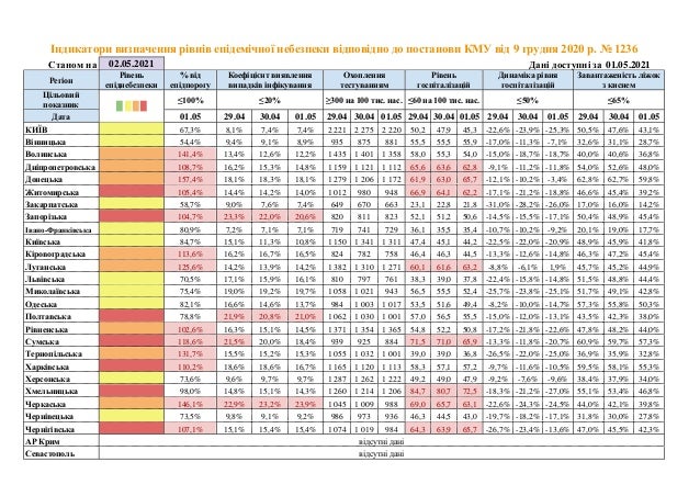 В Украине продолжает улучшаться ситуация с коронавирусом. По состоянию на 5 мая в стране не осталось ни одного региона, где был бы превышен показатель госпитализаций пациентов с COVID-19. Об этом свидетельствуют данные Министерства здравоохранения.