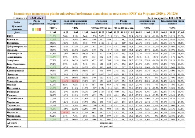 При этом сразу девять регионов соответствуют "зеленой" зоне по проценту от эпидемического порога: Киев, Волынская, Закарпатская, Киевская, Львовская, Николаевская, Полтавская, Хмельницкая и Черниговская область.