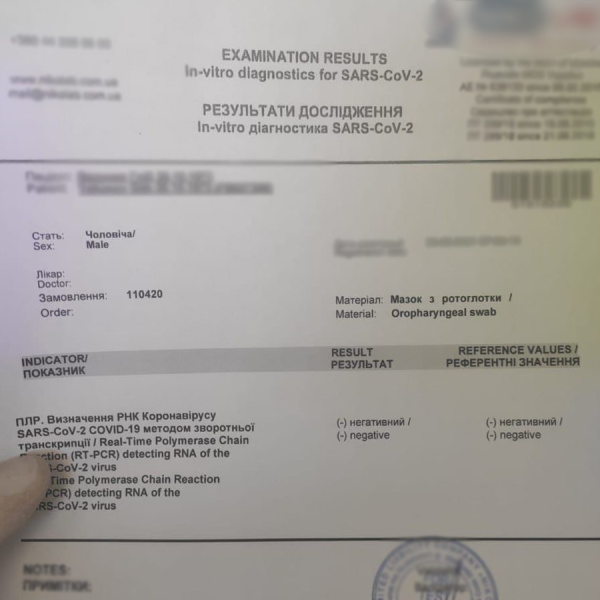 Так, фирма предлагала клиентам, как "дополнительную услугу", во время оформления документов для выезда за границу, уже готовые ПЦР-тесты от якобы украинских лабораторий.