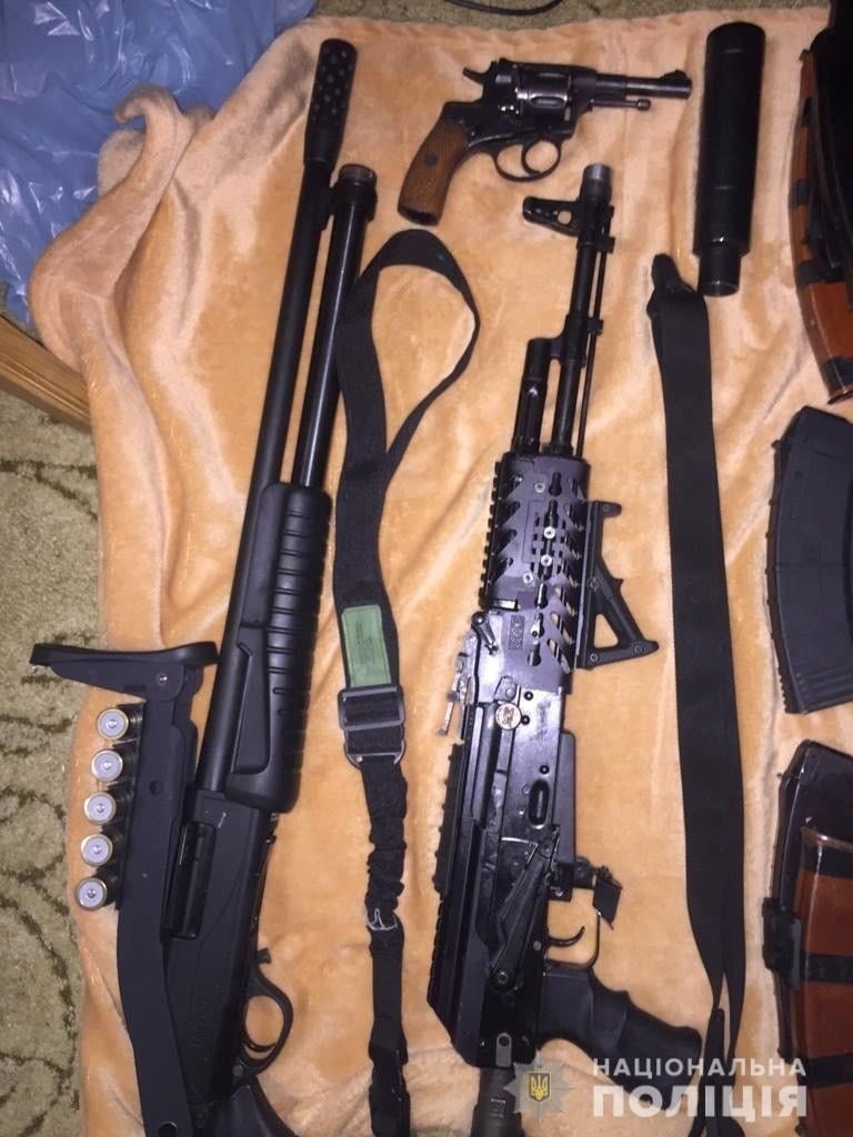 В ходе обысков были изъяты автомат Калашникова АКС-74, более 1100 патронов к нему, травматический пистолет, помповое ружье с патронами, кастет, а также другие предметы.