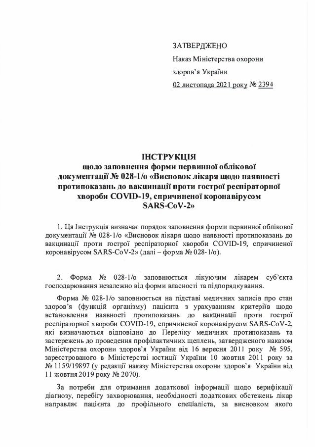 Украинцы, которым противопоказана вакцинация от коронавируса, смогут получить от семейного врача справку. Министерство здравоохранения утвердило соответствующую форму № 028-1/о. Об этом сообщает пресс-служба Минздрава.