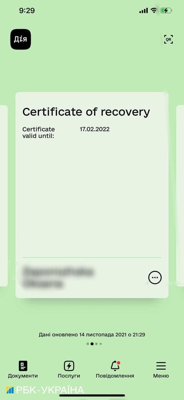 В «Дії» появился сертификат о выздоровлении от коронавирусной инфекцией. Для удобства пользователей в приложении есть два документа - внутренний и международный, сообщает РБК-Украина.