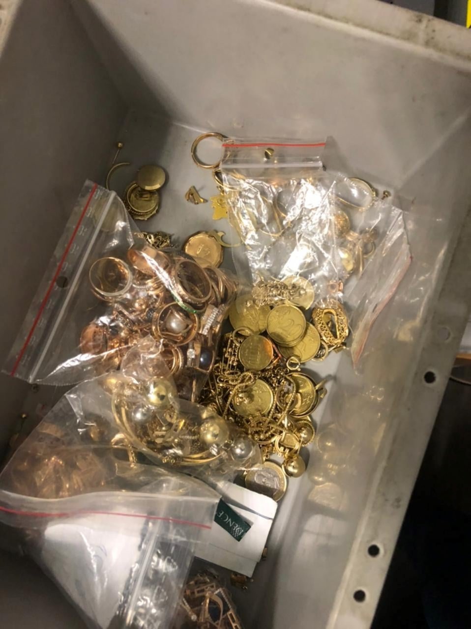 Подчеркивается, что это рекордное количество валюты и ювелирных изделий. Проводится документирование правонарушения.