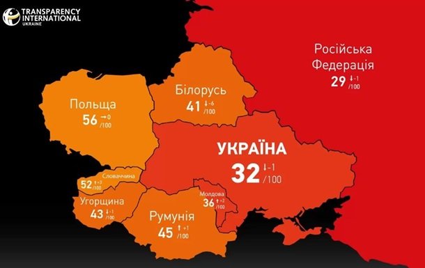 "32 балла из 100 возможных получила Украина в Индексе восприятия коррупции за 2021 год. Наш показатель снизился на один балл, и теперь Украина в CPI занимает 122-е место из 180 стран", - говорится в сообщении.