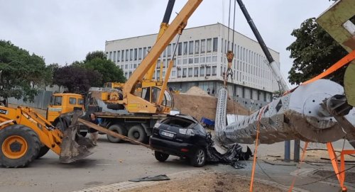 В Херсоне флагшток упал на Lexus чиновника, отвечавшего за установку