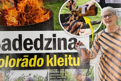 Отмечается, что Калниете даже жалко платье, так как оно было дорогим, но не понравилось ей по цветовой гамме, поскольку она напоминает георгиевскую ленту. Сама депутат называет расцветку «колорадской». «Она давно пообещала его сжечь, но вот, наконец, и дата подвернулась», — гласят подписи в журнале.![]()