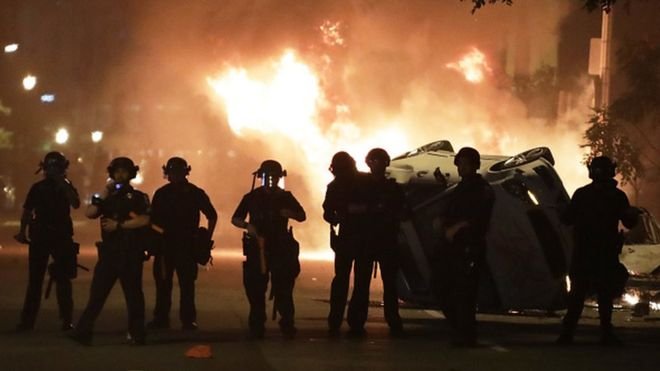 Комендантский час к вечеру воскресенья объявлен в Миннеаполисе, Сиэтле, Портленде, Денвере, Атланте, Лос-Анджелесе, Кливленде, Колумбусе, Питтсбурге и Филадельфии.