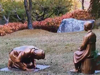 В южнокорейском Пхёнчхане поставили памятник жертвам сексуального рабства времен Второй мировой войны, который представляет собой две позолоченные статуи. Первая — сидящая девушка, которая символизирует «женщин для утешения», которых заставляли работать в борделях Японии. Вторая статуя — преклонившийся перед ней мужчина. Журналисты отметили, что черты его лица напоминают японского премьера Синдзо Абэ.