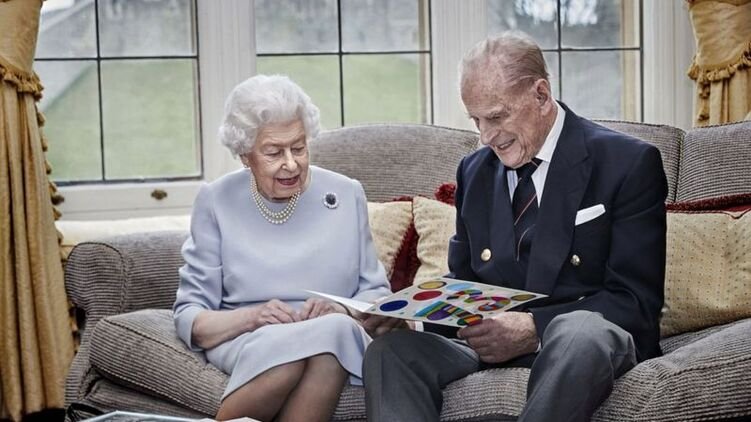 По случаю праздника представлен новый портретный снимок Ее Величества, на котором 94-летняя королева Елизавета II и ее 99-летний супруг Филипп рассматривают поздравительную открытку, сделанную правнуками - принцем Джорджем, принцем Луи и принцессой Шарлоттой - детьми принца Уильяма и герцогини Кембриджской Кэтрин.