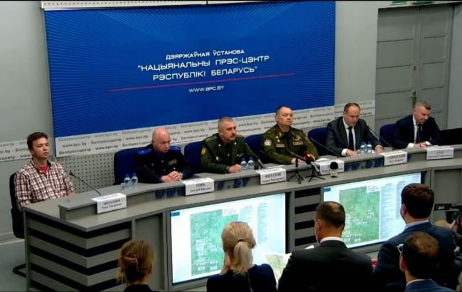 На этом брифинге представители белорусских министерств и силовых органов представляют свою версию инцидента с самолетом авиакомпании Ryanair.