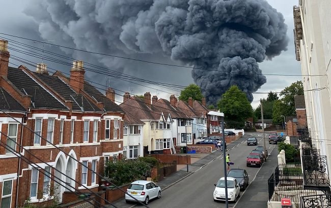 В центральной части Англии в городе Лимингтон-Спа масштабный пожар охватил промышленную зону. На месте инцидента раздаются громкие взрывы.