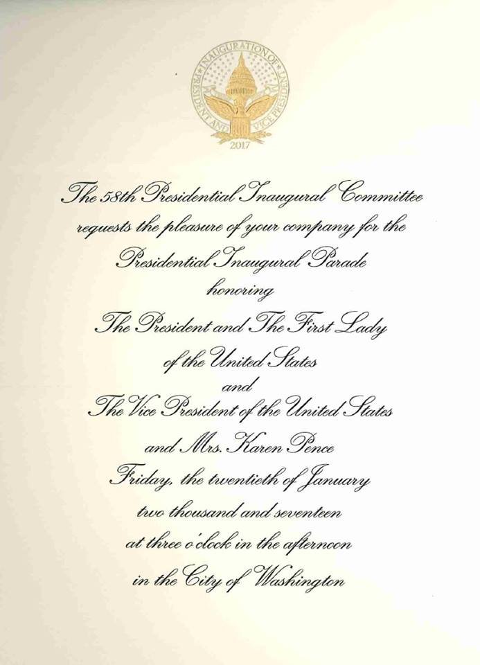 По завершении церемонии сложивший полномочия руководитель страны покинет Капитолийский холм. Вступившие в должность президент и вице-президент возвратятся в здание Капитолия, где Объединенный комитет Конгресса по проведению инаугурации даст торжественный обед в их честь. Трамп и Пенс возглавят торжественную процессию по Пенсильвания-авеню от здания Конгресса до Белого дома. Как утверждают представители инаугурационного комитета, на этот раз парад по времени будет короче, поскольку Трамп хочет как можно скорее приступить к работе. В 2013 году он продолжался около трех часов. В команде нового президента рассчитывают, что шествие продлится примерно полтора часа. Всего в параде примут участие 8 тыс. человек и 40 организаций. Музыкальное сопровождение будут обеспечивать сразу семь школьных марширующих оркестров.