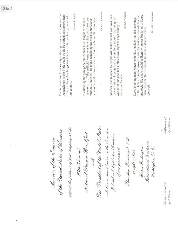 В день инаугурации для вступающего на пост президента проводится религиозная служба. Эта традиция возникла в 1933 году при президенте Франклине Рузвельте. После окончания службы будущие президент и вице-президент приезжают в Белый дом, чтобы пообщаться с пока еще действующими руководителями страны. Уходящий глава государства пишет благодарственные письма сотрудникам Белого дома, а также оставляет в Овальном кабинете записку с напутствием новому лидеру. Затем покидающий свой пост президент вместе с избранным президентом отправляются на Капитолийский холм.