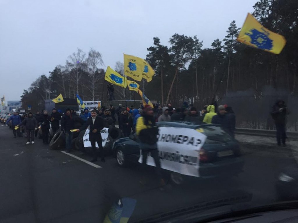 Акции пока немногочисленны, однако активисты начали жечь шины в поддержку законопроекта №5567, который позволит не растаможивать ввозимые из-за границы машины.