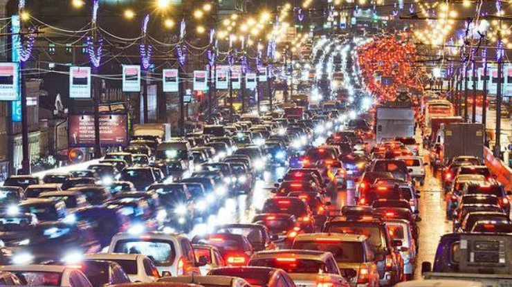 Из-за сложных погодных условий и многочисленных ДТП Киев остановился в пробках, передает Хроника.инфо со ссылкой на nv.ua.