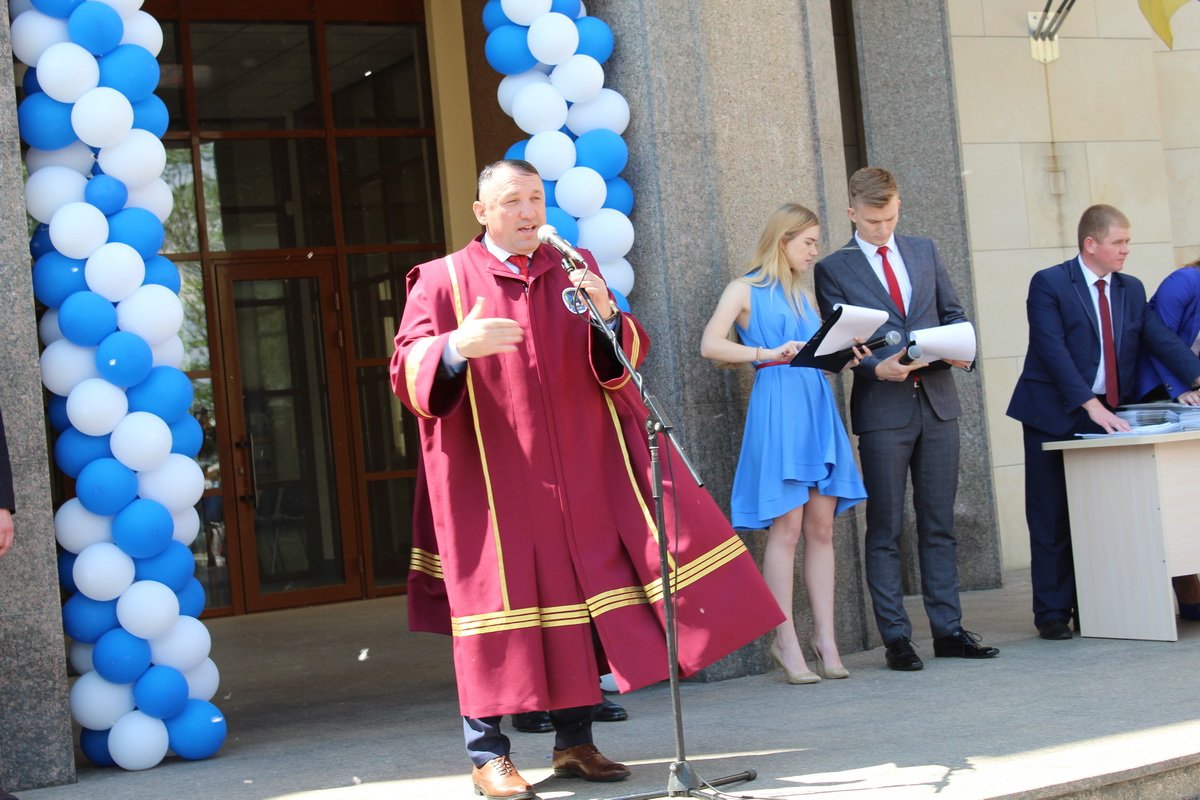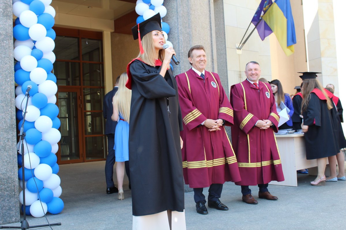 На вручении дипломов выпускникам президент вуза обращается к бывшим студентам, а теперь – высококлассным специалистам и пригласил их продолжить свое обучение в аспирантуре в Одессе.