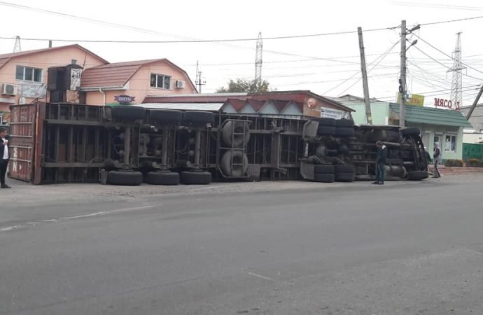 Сегодня ночью в Усатово крупногабаритная фура опрокинулась на бок вблизи магазинов и аптеки на ул.Гагарина.