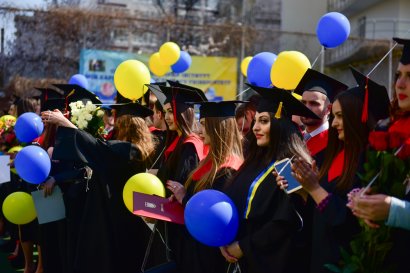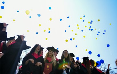 Выпускники запустили в небо сотни воздушных шариков. Как принято во всех университетах мира, ребята дружно подкинули свои конфедератки – на удачу.