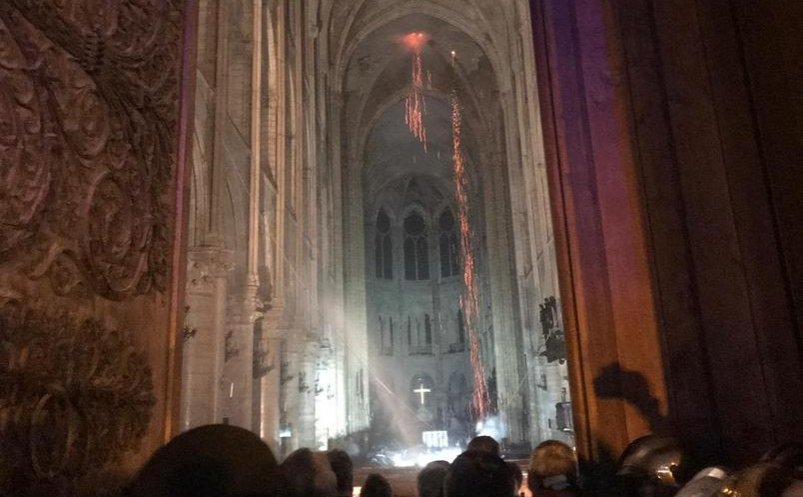 Французские СМИ публикуют изображения, которые были сделаны после того, как сильный пожар в Нотр-Дам де Пари удалось потушить. На изображениях заметно, что алтарь и алтарный крест собора Нотр-Дам сохранились.