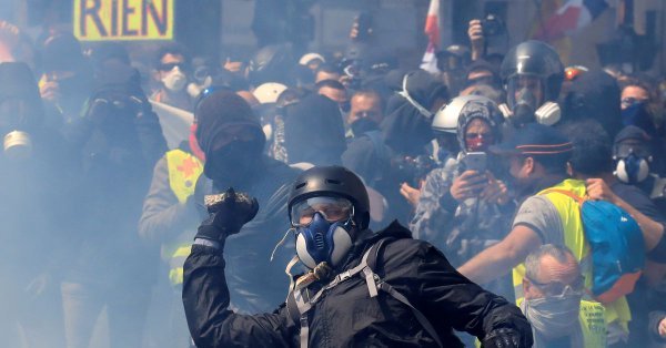 В Париже десятки тысяч протестующих вышли на улицы, чтобы продемонстрировать реакцию на предложение президента Эммануэля Макрона.