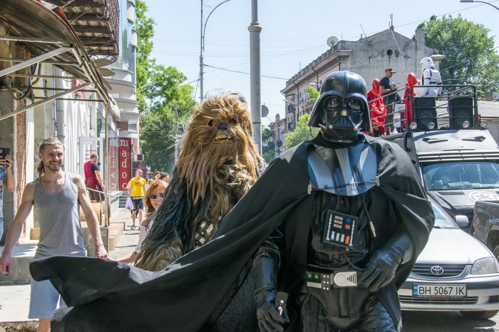 Маршрут Дарта Вейдера также проходил через железнодорожный вокзал и Привоз, где во время ожидания в пробке одна из поклонниц даже попыталась забраться на крышу автобуса.