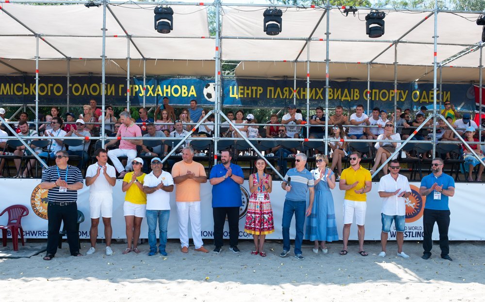 Открыли международные соревнования глава Всеукраинской федерации пляжной борьбы, заслуженный тренер Украины, президент общественной организации «Мангуст» Магомед Магдиев и президент комитета ассоциативных стилей борьбы «United World Wrestling» Педро Силва.