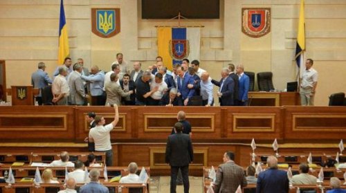 Сессия Одесского облсовета 16 августа началась с потасовки депутатов.