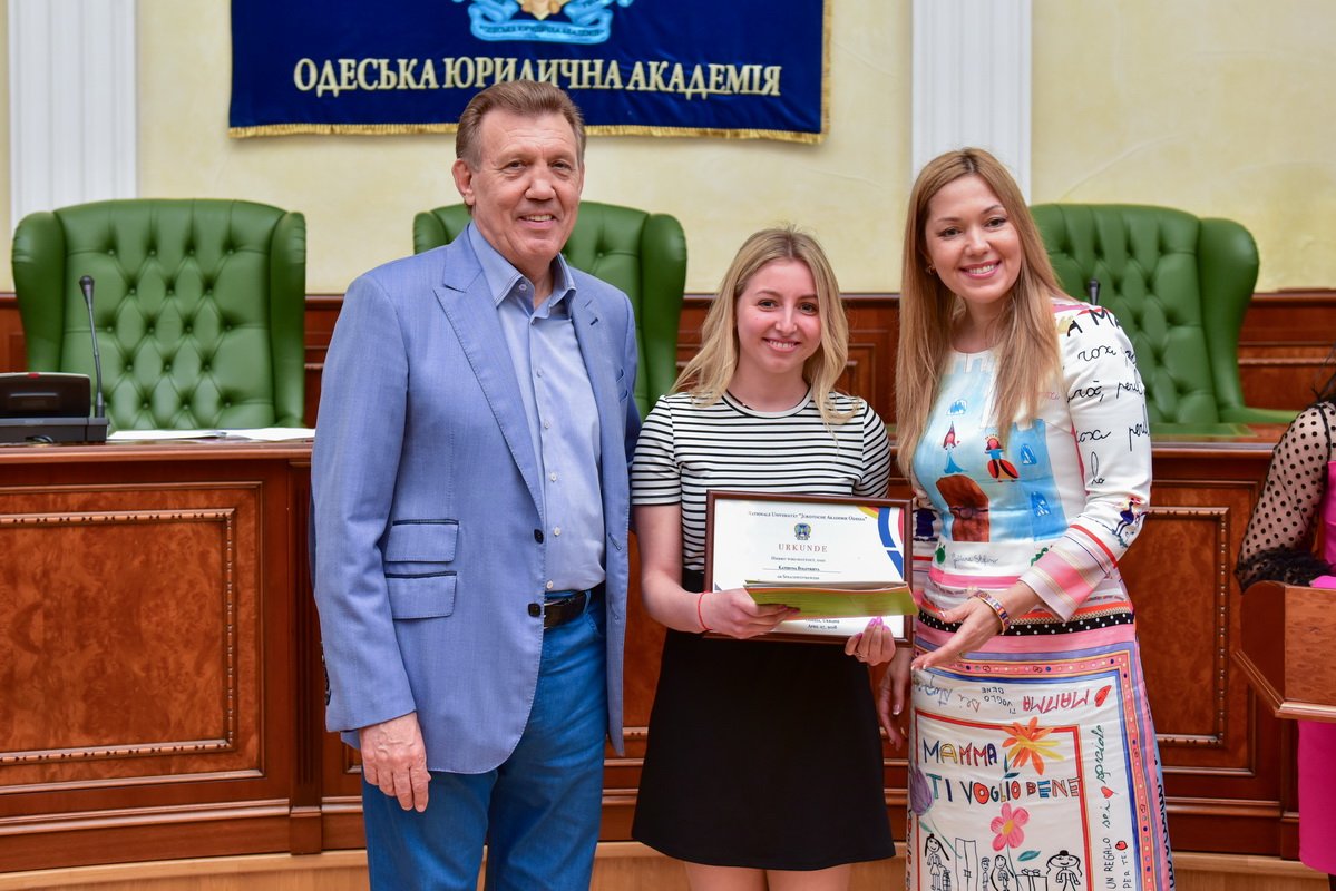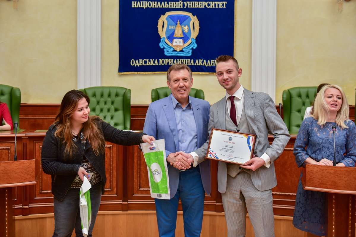В зале заседаний ученого совета НУ «ОЮА» состоялось торжественное награждение победителей конкурса, специальными гостями которого стали директор Центра изучения немецкого языка «Баварский Дом, Одесса» Мария Дегтяренко, директор французского центра «Aльянс Франсез» в Одессе Диана Бангура, референт Почетного консула Германии в Одессе Александра Личагина, руководитель учебного языкового центра «Sprachcafe» в г. Одесса Екатерина Штуца.