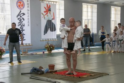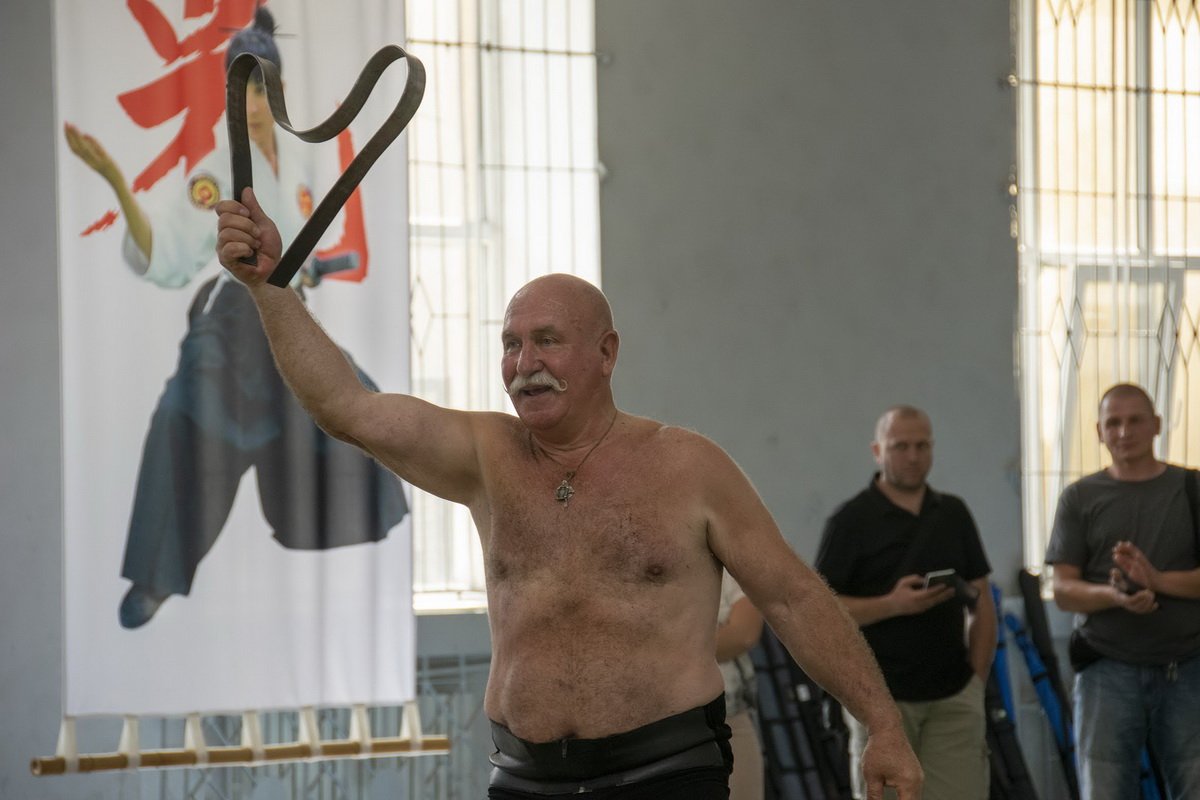 Одним из почетных гостей семинара стал легендарный одесский богатырь, мастер спорта СССР по борьбе самбо и рукопашному бою Николай Пасечник. С легкостью он скручивает стальную арматуру, завязывает узелком гвозди, обжигает себя огнем и ходит по стеклу ногами.