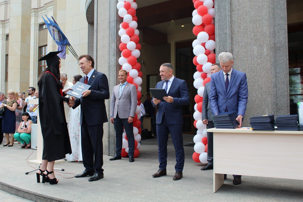 Торжественная церемония началась вручением дипломов с отличием лучшим студентам университета, которые достигли больших успехов в учёбе, творчестве и общественной деятельности.