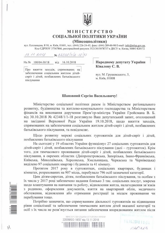 Народный депутат объясняет, что несмотря на то, что значительная часть денег на строительство или покупку социального жилья для выпускников интернатов поступает из государственной казны и к финансированию подключаются и местные бюджеты, образовавшуюся очередь не удается ликвидировать уже многие годы. Бывает и так, что жилье за сиротами закрепляют еще на этапе получения такого статуса. Но часто оно не сохраняется до достижения совершеннолетия ребенка – и в первую очередь это вина органов исполнительной власти и местного самоуправления, констатирует Сергей Кивалов.