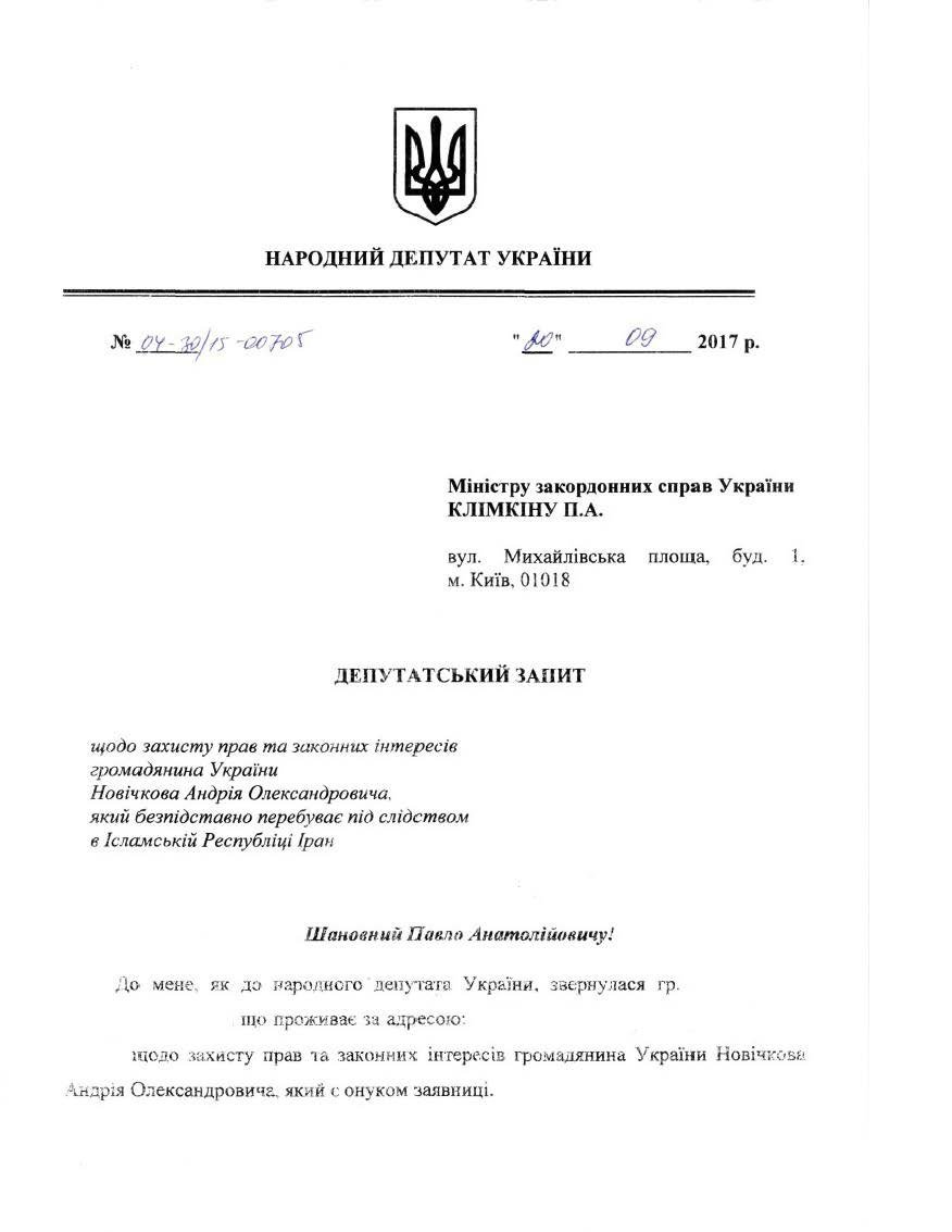 В конце октября народный депутат встретился с Президентом Украины, который обещал поспособствовать возвращению домой нашего соотечественника. Как результат, Петр Порошенко подписал указ о помиловании иранца Али Джадуеля, благодаря чему стал возможен равноценный обмен украинца на гражданина Ирана.