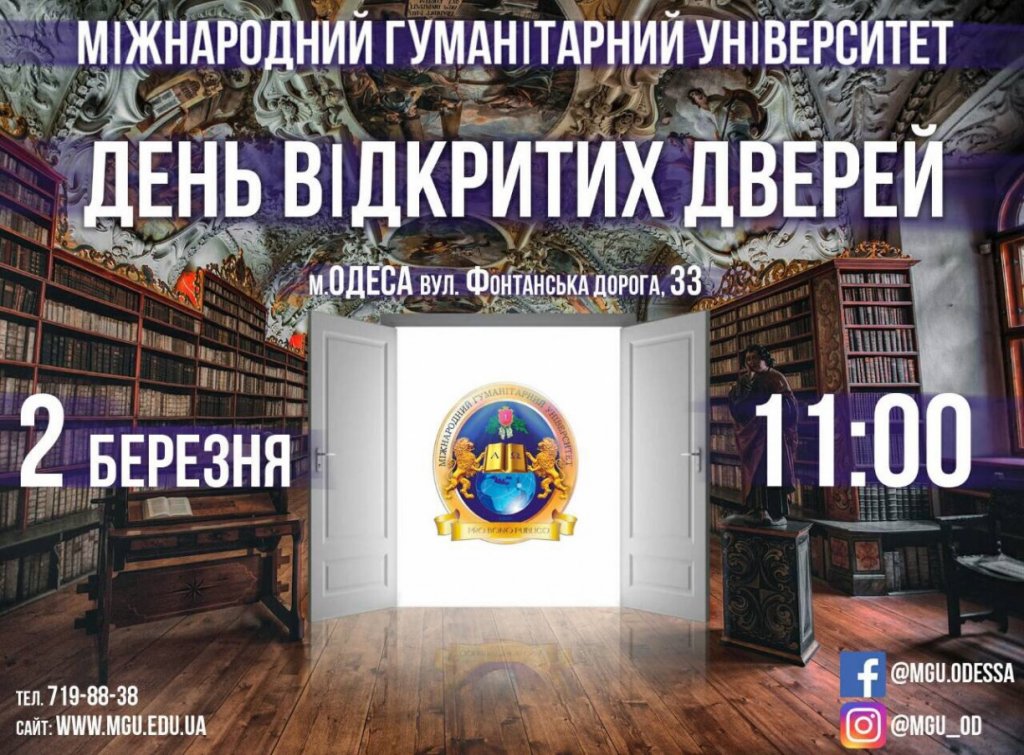 Мечтаете об успешном будущем и европейском образовании! Международный гуманитарный университет приглашает Вас на День открытых дверей, который пройдет 2 марта в 11:00 по адресу: г. Одесса, улица Фонтанская дорога, 33.