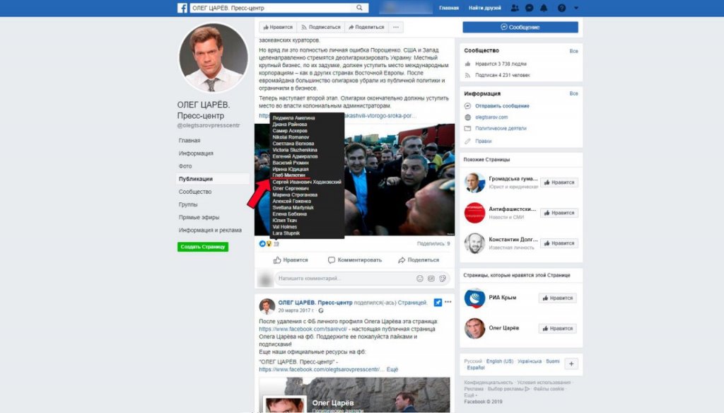 Свои фотографии главный налоговик в Фейсбуке не размещает. Но в том, что это действительно его страница, можно убедиться, просмотрев некоторые его публикации и обнаружив массу чиновников и налоговиков у него в друзьях. Всё бы ничего, только вот не знал глава ДФС области, что существует специальное приложение (Advanced Search For Facebook), которое позволяет увидеть все публикации, которые когда-либо «лайкал» тот или иной пользователь. И здесь, среди тысячи залайканых фотографий разного рода чиновников и членов семьи, мы видим, что Милютин одобрил и целый ряд постов Олега Царева. В частности, среди них пост о том, что «Крым принадлежит России», что «Майдан сыграл пагубное влияние на жизнь Украины», о попытках запада «колонизировать Украину» и т.д. Иными словами, можно с уверенностью сказать, что если бы события развернулись иначе, и Одесская область была бы захвачена и превращена в некое ОНР, то уж кто-кто, а Глеб Милютин явно по этому поводу бы не печалился.