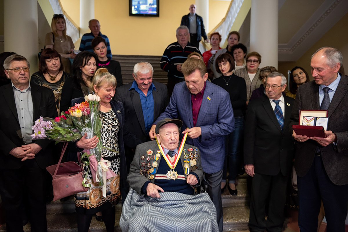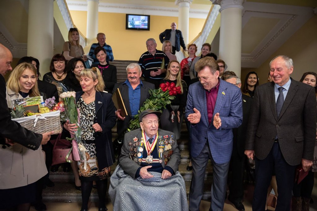Поздравления юбиляр принимал в стенах Одесского регионального института государственного управления НАГУ при Президенте Украины. Здесь собрались его коллеги и ученики, родные и друзья. Первым поздравил кавалера орденов «Красная Звезда» и орденов Великой Отечественной войны народный депутат Украины Сергей Кивалов: